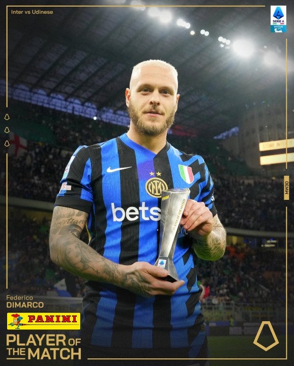 3月31日訊 意甲第30輪,國(guó)米2-1烏迪內(nèi)斯。迪馬爾科助攻雙響,賽后意甲聯(lián)賽官方宣布,迪馬爾科當(dāng)選本場(chǎng)比賽最佳球員。