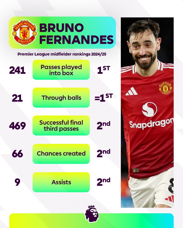 - 曼聯(lián)大腿!B費(fèi)本賽季傳入禁區(qū)、直塞英超中場(chǎng)最多,助攻第二多