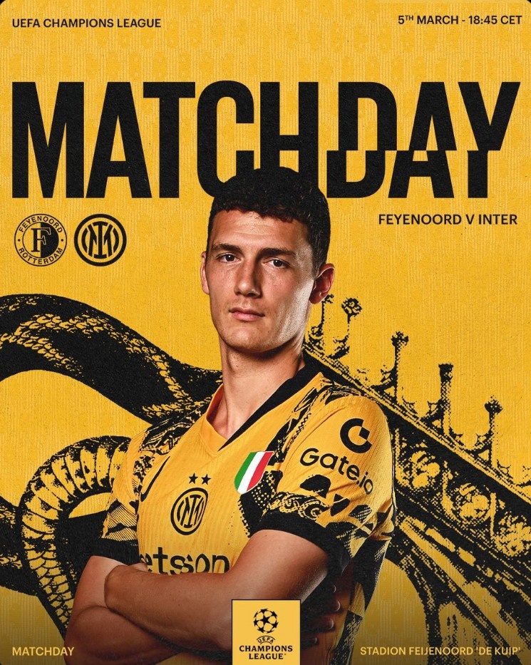 國(guó)米發(fā)布本輪歐冠對(duì)陣費(fèi)耶諾德海報(bào),帕瓦爾單人出鏡