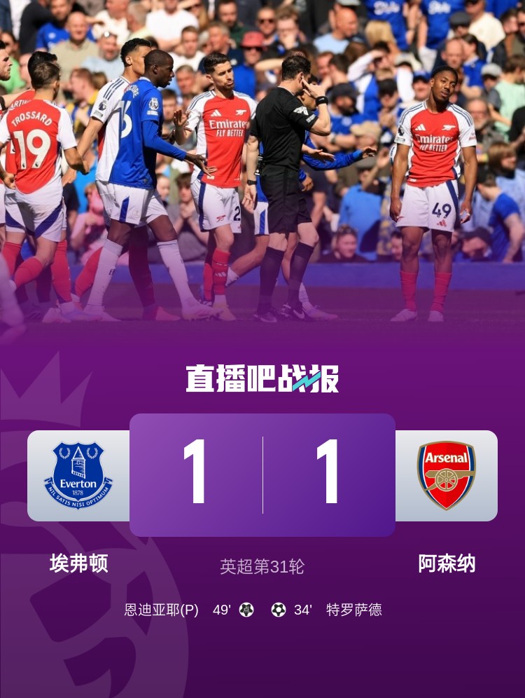 04月06日訊 英超第31輪,阿森納1-1戰(zhàn)平埃弗頓,利物浦在少賽一場的情況11分領(lǐng)跑。