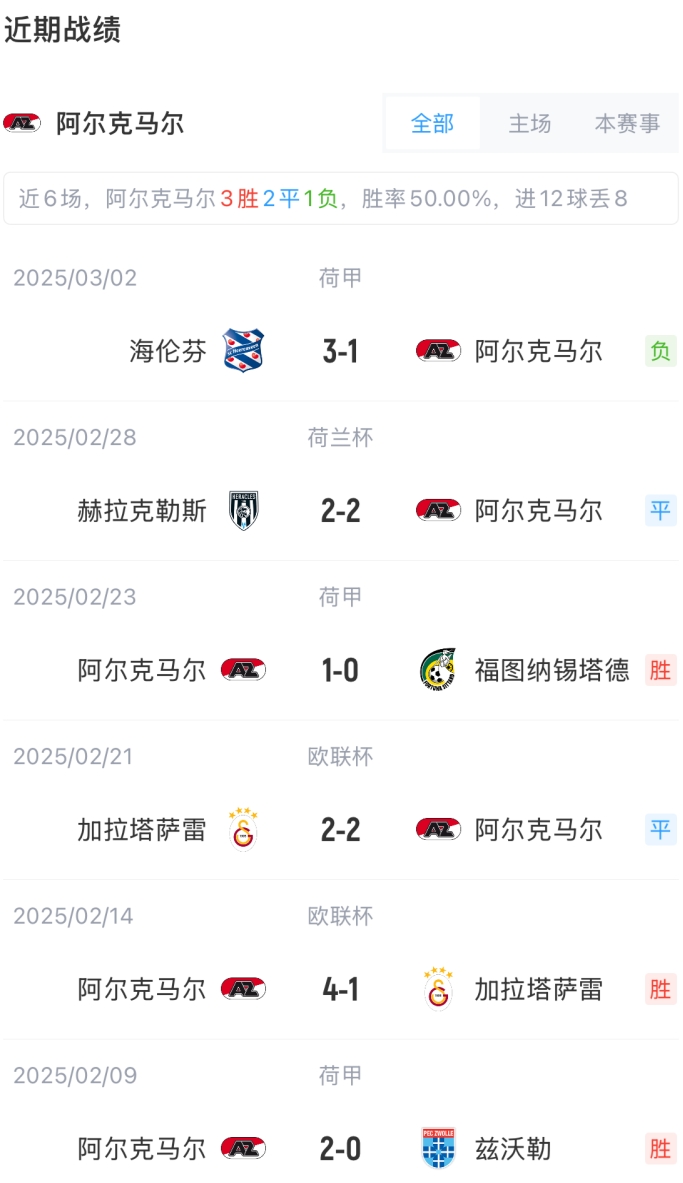 阿爾克馬爾首發(fā):1-奧烏蘇、16-每熊晟矢、3-古斯、5-曼努埃爾、18-穆勒-沃爾夫、8-穆勒-沃爾夫、28-布梅斯特、6-庫(kù)普梅納斯、21-波庫(kù)、9-帕洛特、23-拉赫多