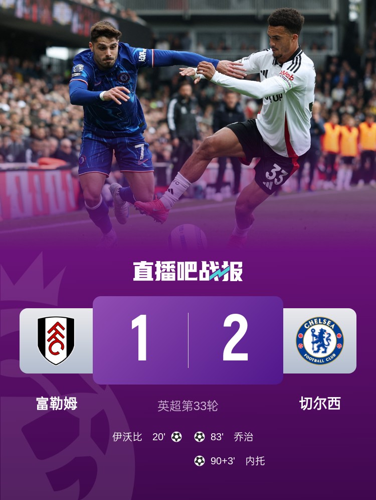 絕殺!切爾西2-1富勒姆 終結(jié)客場(chǎng)8場(chǎng)不勝 內(nèi)托絕殺19歲喬治遠(yuǎn)射