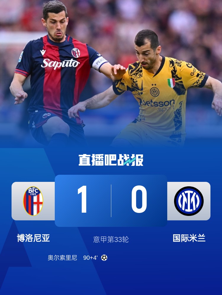 國(guó)米遭博洛尼亞讀秒絕殺,奧爾索里尼的倒鉤為博洛尼亞拿下3分。