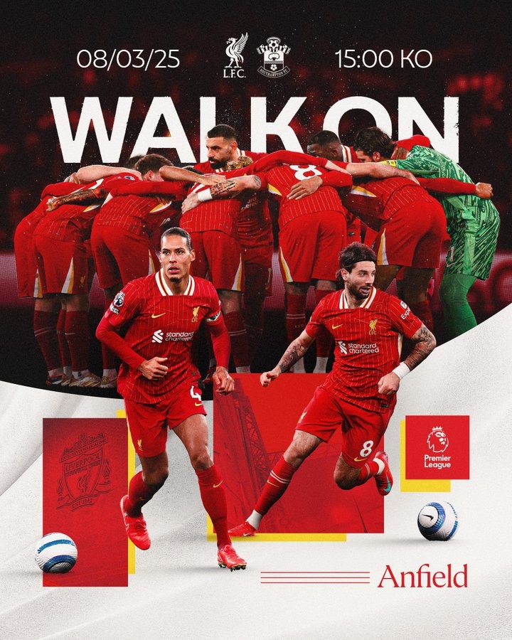 3月8日訊 今晚11點(diǎn),利物浦將在英超主場(chǎng)迎戰(zhàn)南安普頓,紅軍在官推曬出海報(bào),為比賽預(yù)熱。