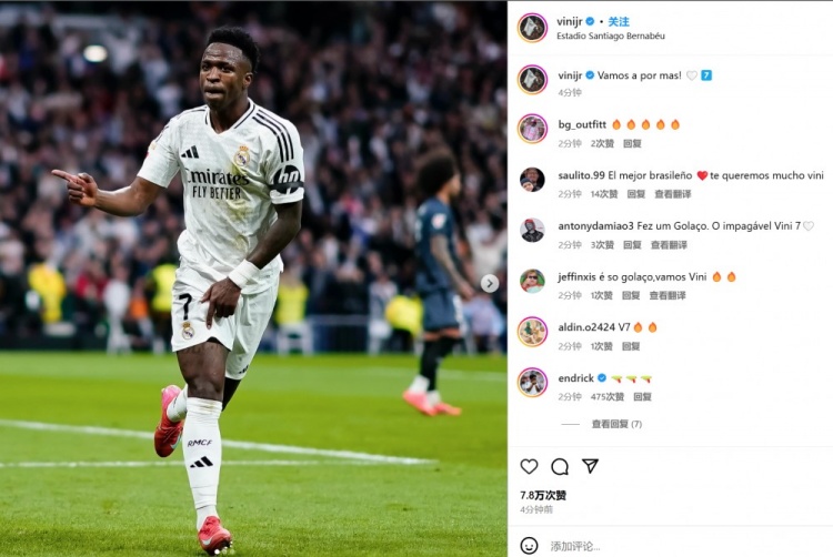 維尼修斯社媒慶祝勝利:讓我們繼續(xù)前進贏得更多!