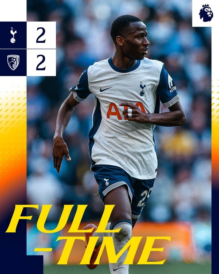 3月10日訊 本輪英超焦點戰(zhàn),熱刺在主場2球落后情況下最終戰(zhàn)平伯恩茅斯。
