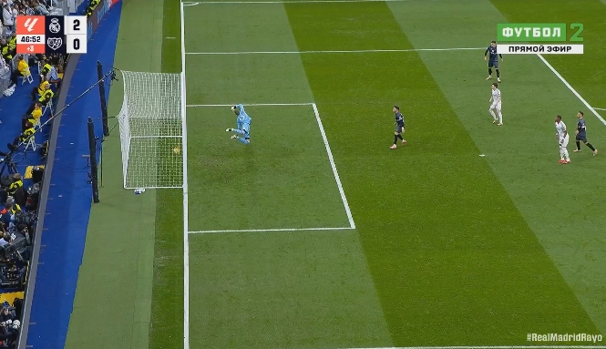 03月10日訊 皇馬vs巴列卡諾上半場最后階段,巴列卡諾爆射橫梁下沿彈入球網(wǎng),VAR判球進!皇馬2-1巴列卡諾。