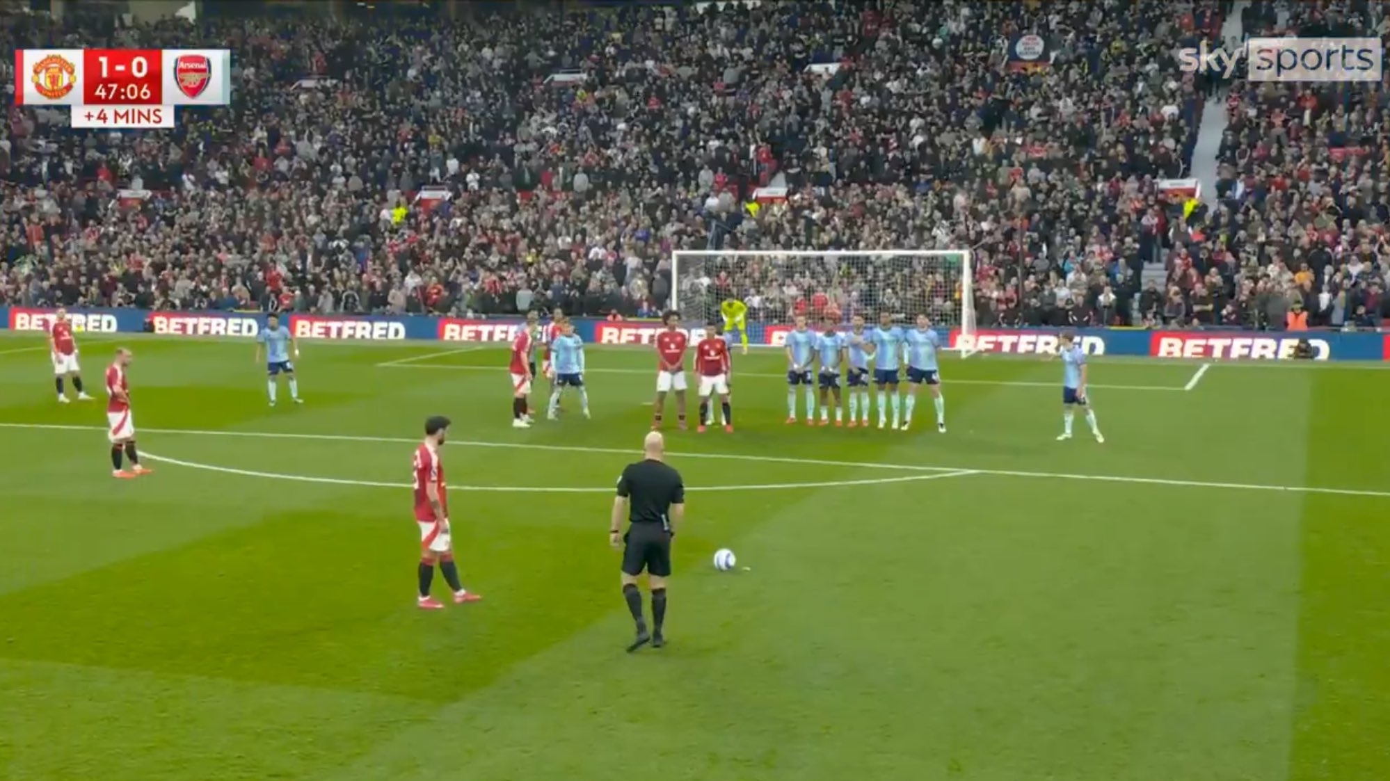 不少評(píng)論員和球迷都指出,B費(fèi)主罰任意球時(shí)阿森納的人墻看來似乎距離過遠(yuǎn)。
