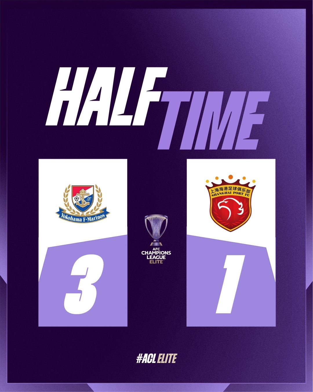 傷停補(bǔ)時4分鐘。上半場比賽結(jié)束,上海海港1-3橫濱水手。
