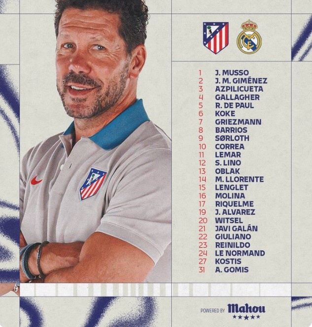 馬競(jìng)VS皇馬大名單:格列茲曼、阿爾瓦雷斯領(lǐng)銜,德保羅出戰(zhàn)