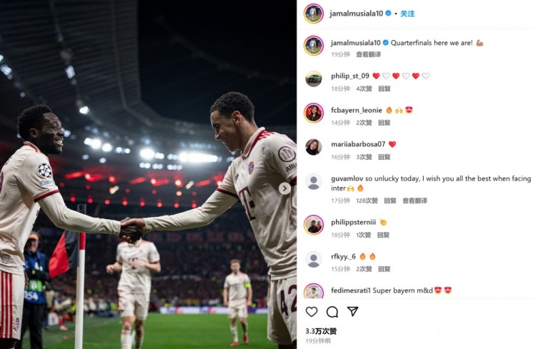 將戰(zhàn)國米!穆西亞拉社媒曬與戴維斯握手照:八強(qiáng)戰(zhàn)我們來了!