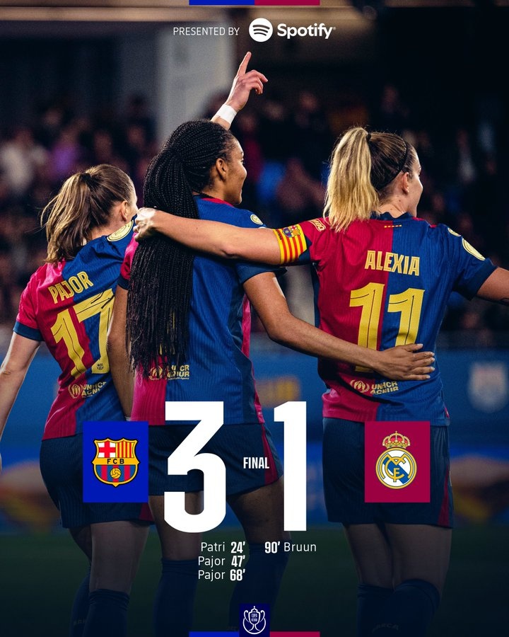 3月13日訊 今天凌晨,巴薩女足在皇后杯半決賽次回合主場(chǎng)3-1擊敗皇馬女足,總比分8-1淘汰對(duì)手,進(jìn)入決賽。