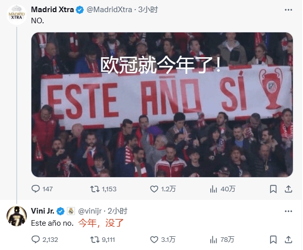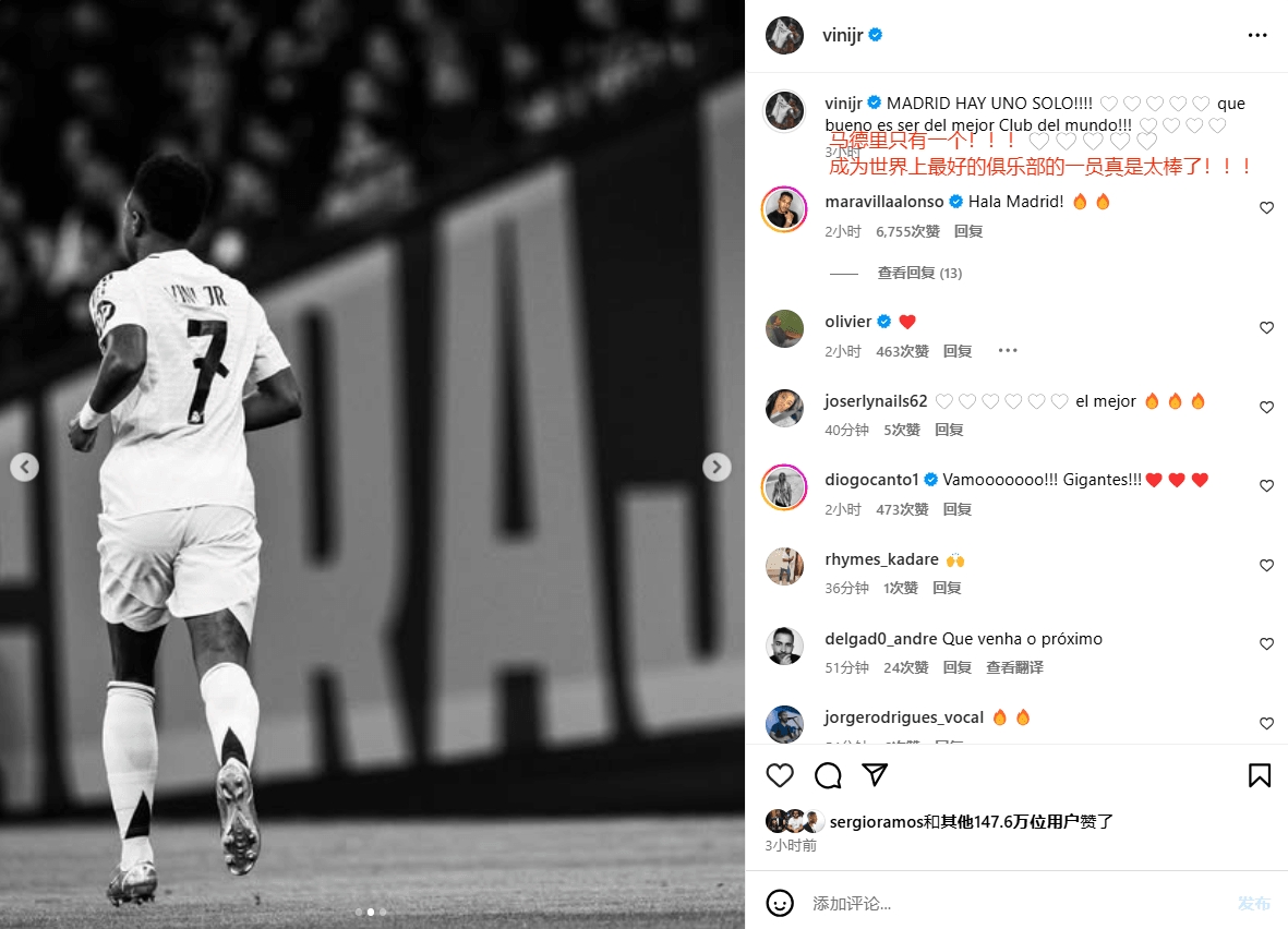 賽后維尼修斯在社媒連續(xù)更新4條動態(tài)(推特3條,ins1條)。