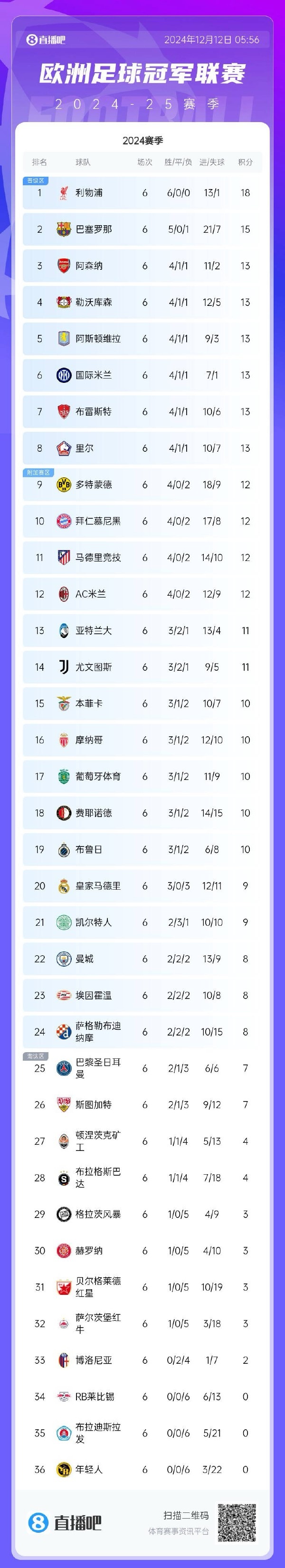 如果將時間倒回至歐冠聯(lián)賽輪第6比賽日結束后,當時巴黎圣日爾曼排在所有球隊里的第25名。