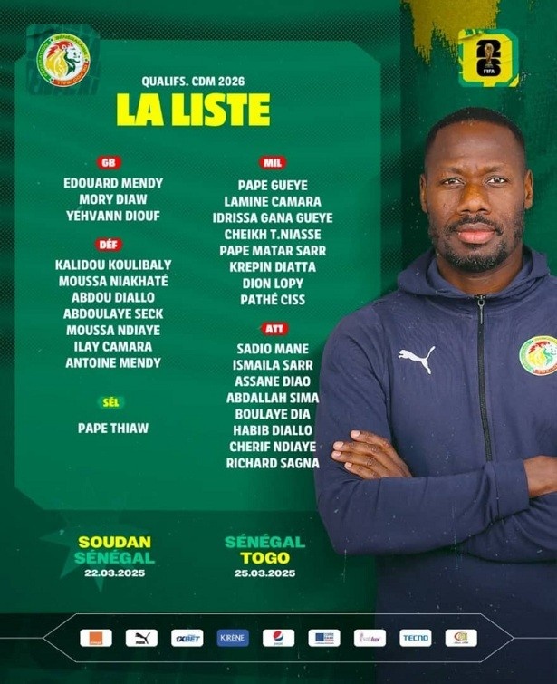 當(dāng)?shù)貢r間本周四,塞內(nèi)加爾國家隊(duì)公布了新一期大名單,備戰(zhàn)接下來對蘇丹(3月22日)和多哥(3月25日)的兩場世界杯非洲區(qū)預(yù)選賽。其中阿薩內(nèi)-迪奧首次入選塞內(nèi)加爾國家隊(duì)。