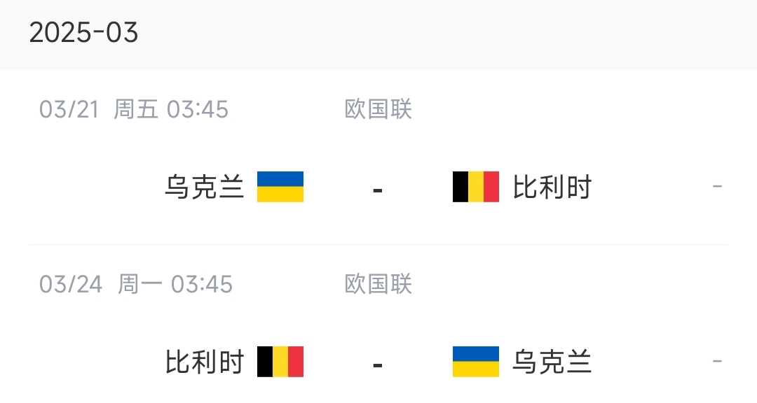 3月份國際比賽日中,比利時將在歐國聯(lián)A聯(lián)賽升級賽中迎來與烏克蘭的兩回合比賽,比賽時間為3月21日和3月24日,比利時先客后主。