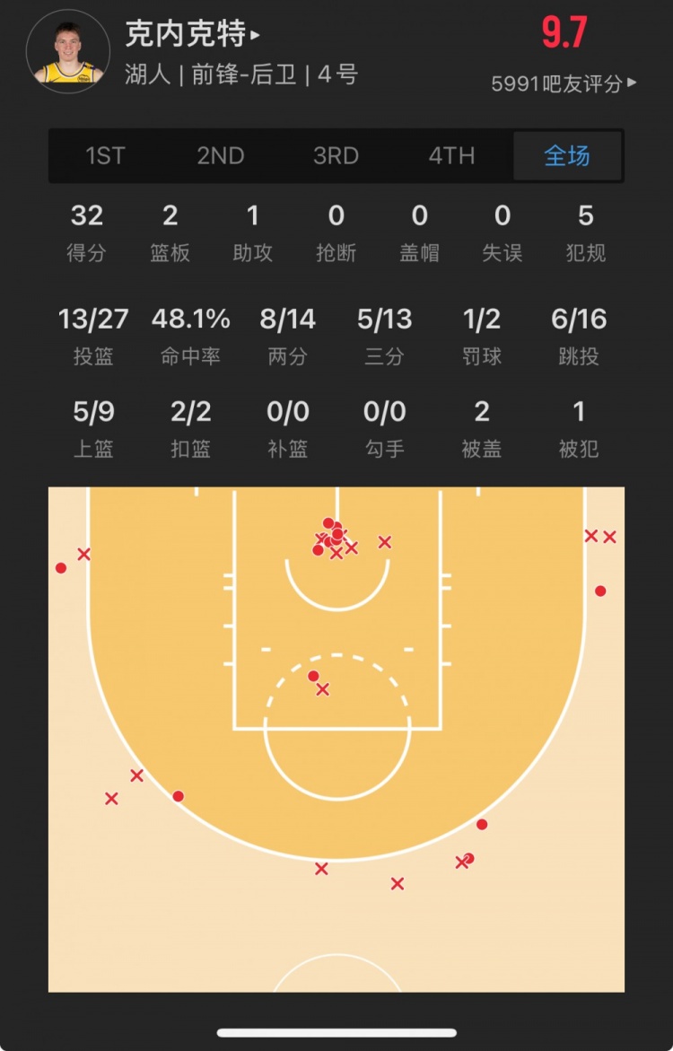 菜鳥丨克內(nèi)克特27中13砍32分 卡斯?fàn)?6分 布朗尼15分鐘5中1得5分