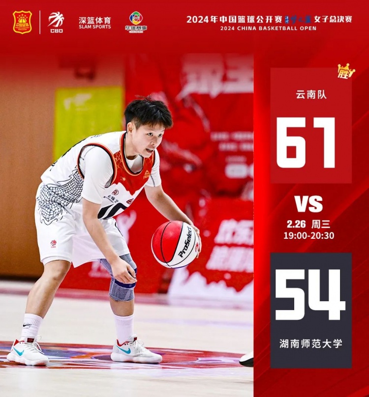 云南隊(duì)和湖南師范大學(xué)在本輪相遇,實(shí)力相當(dāng)?shù)膬芍蜿?duì)打得相對(duì)膠著。上半場,10平后,湖南師范大學(xué)30號(hào)趙詩雨兩分命中,隨后6號(hào)沈思榆外線再貢獻(xiàn)一個(gè)三分球,15-10湖南師范大學(xué)超出。云南隊(duì)依靠6號(hào)羅菲和14號(hào)娜漢的進(jìn)攻緊咬比分。半場結(jié)束云南隊(duì)落后湖南師范大學(xué)1分。下半場,兩隊(duì)依舊難解難分。在云南隊(duì)幾次外線得分實(shí)現(xiàn)反超,14號(hào)娜漢外投內(nèi)突,連續(xù)得分,云南隊(duì)士氣大漲,最終云南隊(duì)61-54戰(zhàn)勝湖南師范大學(xué)。