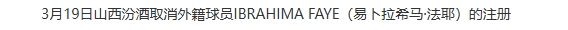 迪亞洛在3月15日對陣青島男籃的比賽吃到技術(shù)犯規(guī),累計(jì)9T自動停賽一場。3月17日,山西取消注冊迪亞洛,注冊回法耶,法耶出戰(zhàn)了對陣福建男籃的比賽。