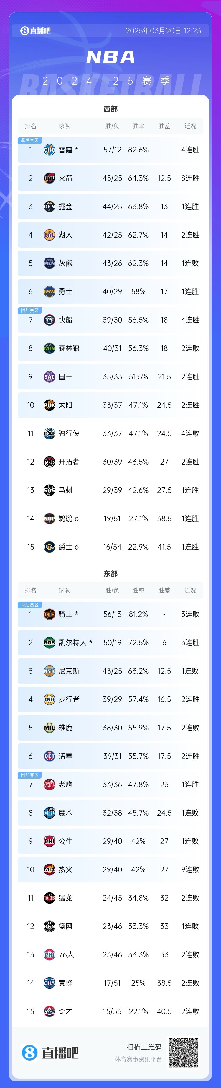 本場比賽過后,太陽與獨行俠戰(zhàn)績持平,同為33勝37負,太陽憑借交手戰(zhàn)績優(yōu)勢(3勝1負)反超對手,升至西部第十,重回附加賽區(qū)。