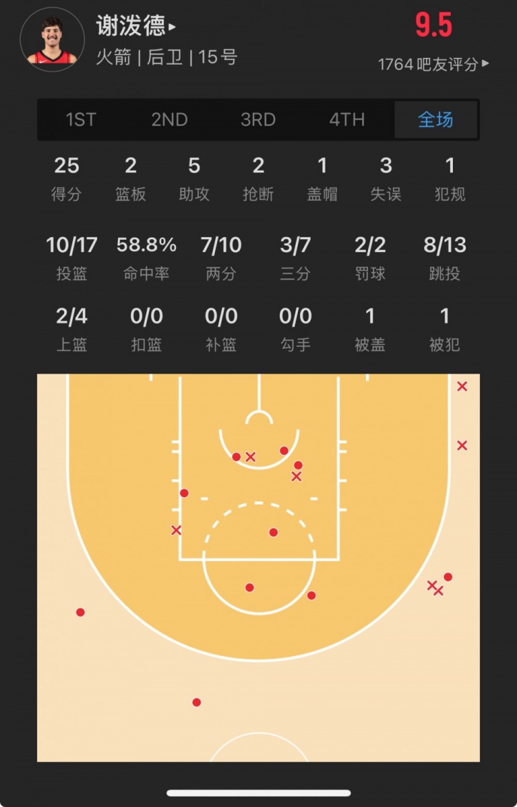火箭探花秀 里德-謝潑德 登場(chǎng)31.4分鐘