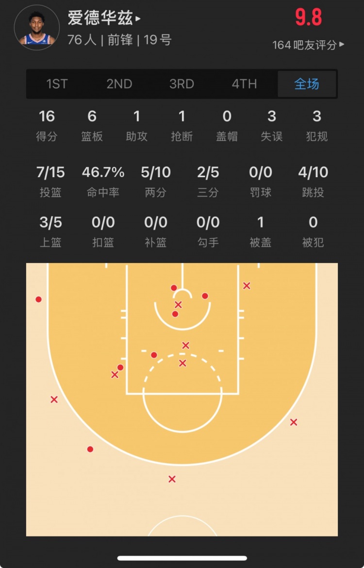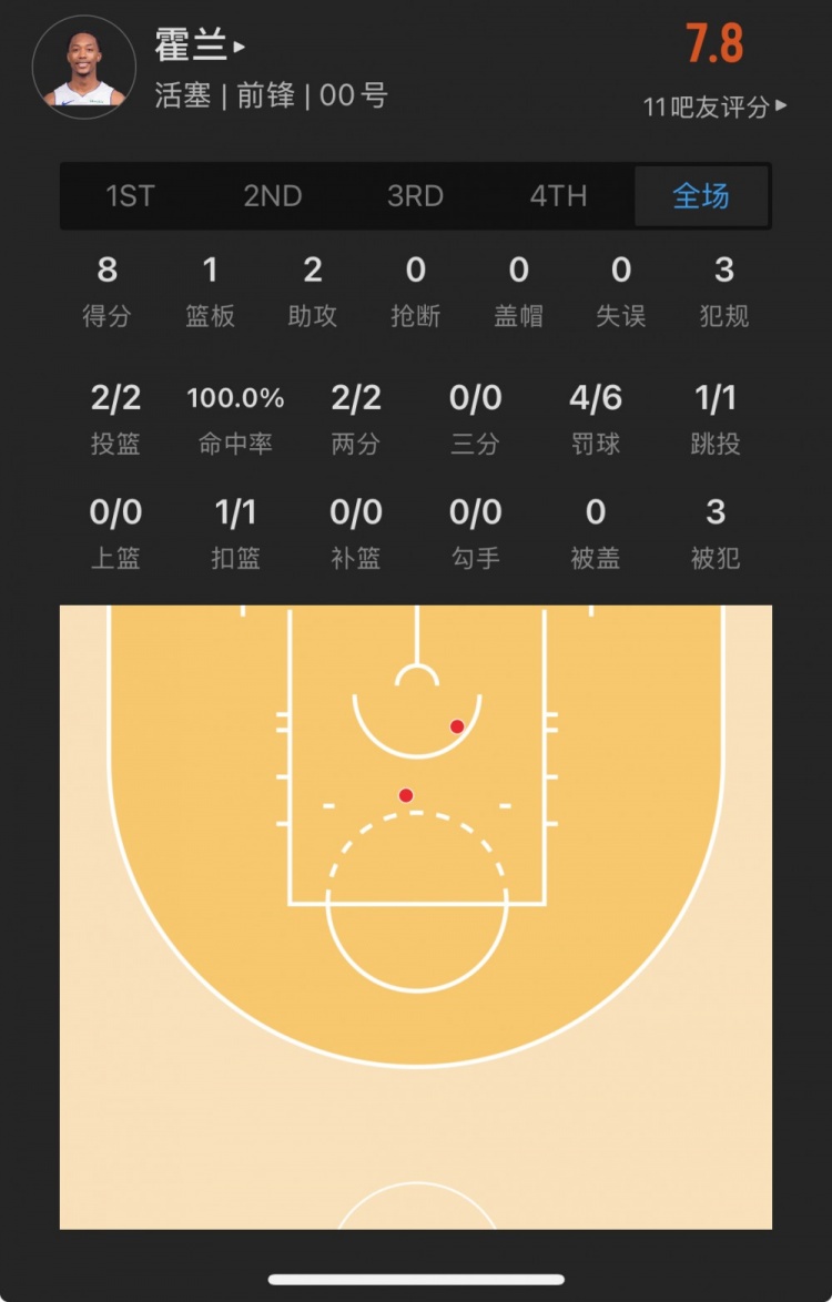 76人41號(hào)秀 阿德姆-博納 登場(chǎng)7.2分鐘