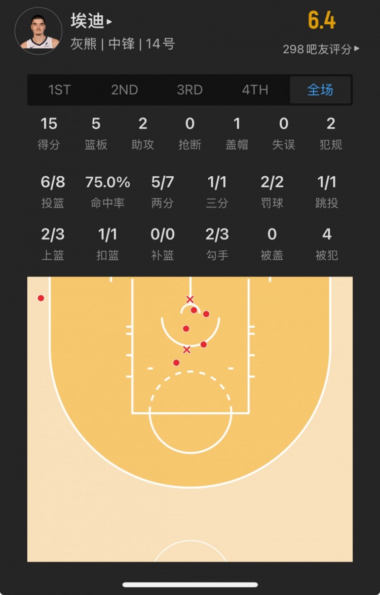 灰熊9號(hào)秀 扎克-埃迪 登場(chǎng)26.8分鐘