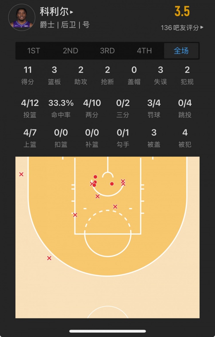 爵士29號(hào)秀 以賽亞-科利爾 登場(chǎng)31.9分鐘