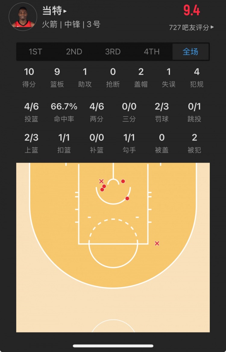 火箭落選秀 恩法利-當(dāng)特 登場(chǎng)18.6分鐘