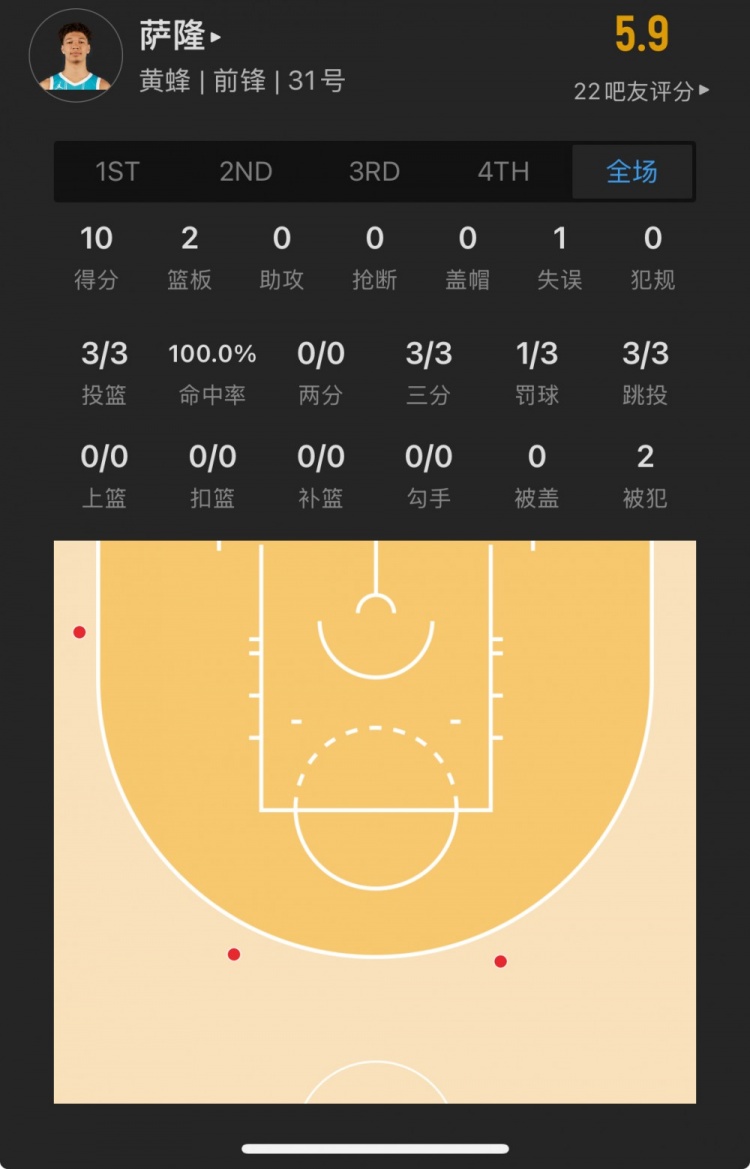 黃蜂6號(hào)秀 提賈尼-薩隆 登場(chǎng)15.1分鐘