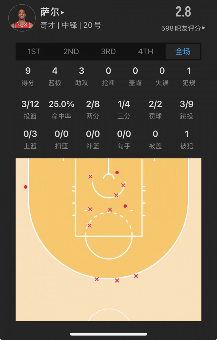 奇才榜眼秀 亞歷克斯-薩爾 登場(chǎng)25.4分鐘