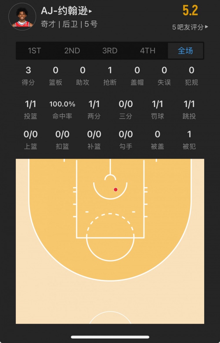 奇才23號(hào)秀 AJ-約翰遜 登場(chǎng)4.3分鐘