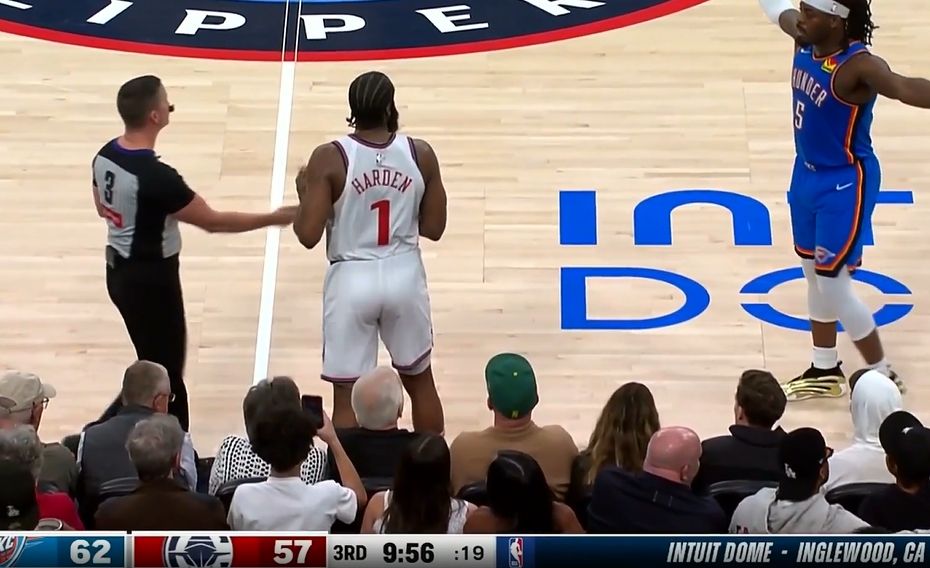 被多特貼身頂翻!哈登捂著自己的大腿痛苦倒地!好在無(wú)礙繼續(xù)比賽