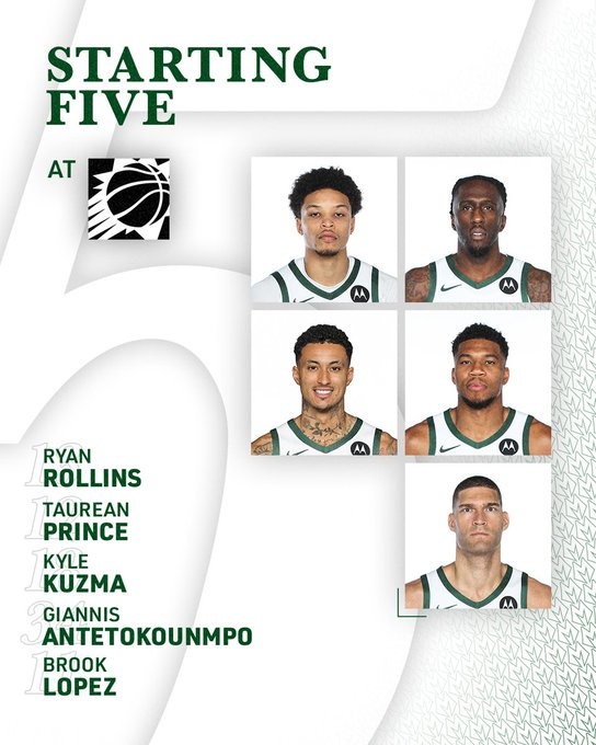 雄鹿:羅林斯、普林斯、庫茲馬、字母哥、大洛。
