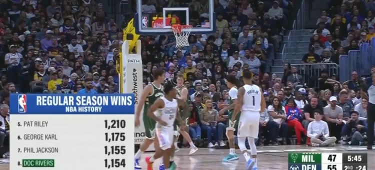 今天能追平嗎?里弗斯勝場數(shù)排名歷史第八 距離禪師僅差1場