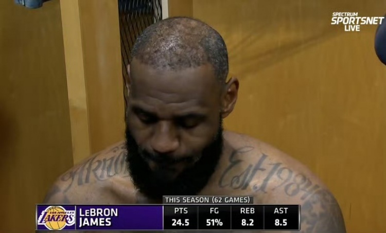 3月28日訊 今日,湖人117-119客場不敵公牛。賽后,湖人前鋒詹姆斯接受了采訪。