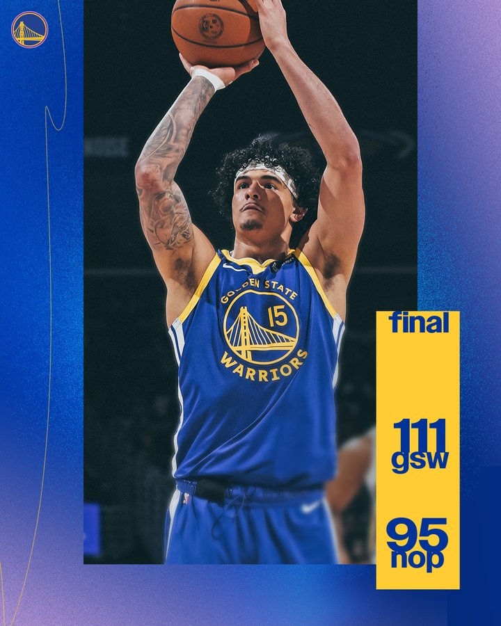 賽后勇士官方曬出本場(chǎng)贏球海報(bào),蓋-桑托斯登上封面。