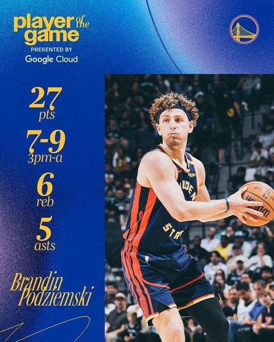 三分9中7轟27+6+5!勇士官方發(fā)布波杰姆數(shù)據(jù)海報(bào):本場(chǎng)最佳球員