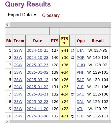 - 酣暢淋漓!勇士本場(chǎng)凈勝對(duì)手42分刷新球隊(duì)本賽季紀(jì)錄 此前為41分