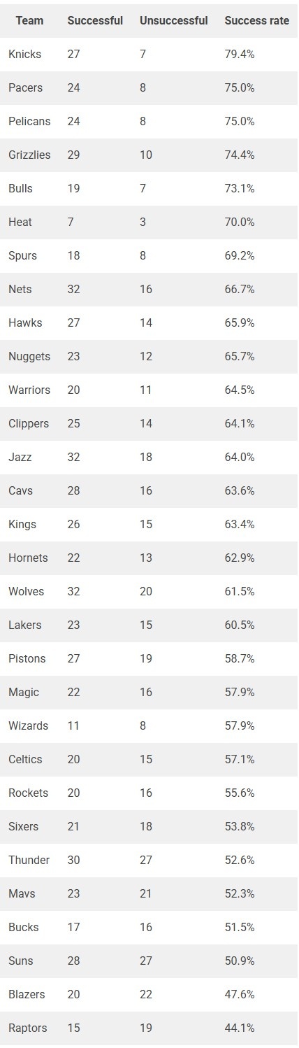 揭秘|教練挑戰(zhàn)有看起來(lái)那么簡(jiǎn)單?錫伯杜成功率最高&斯波次數(shù)最少