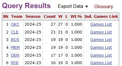 本賽季凈勝15+場次榜:雷霆27場第1 騎士21場第2 綠軍20場第3