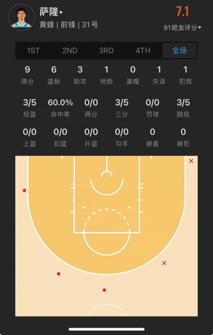 黃蜂6號(hào)秀 提賈尼-薩隆 登場(chǎng)17.6分鐘