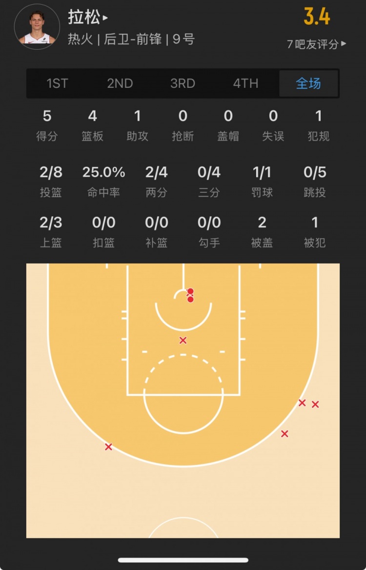 熱火44號(hào)秀 佩勒-拉松 登場(chǎng)18.3分鐘
