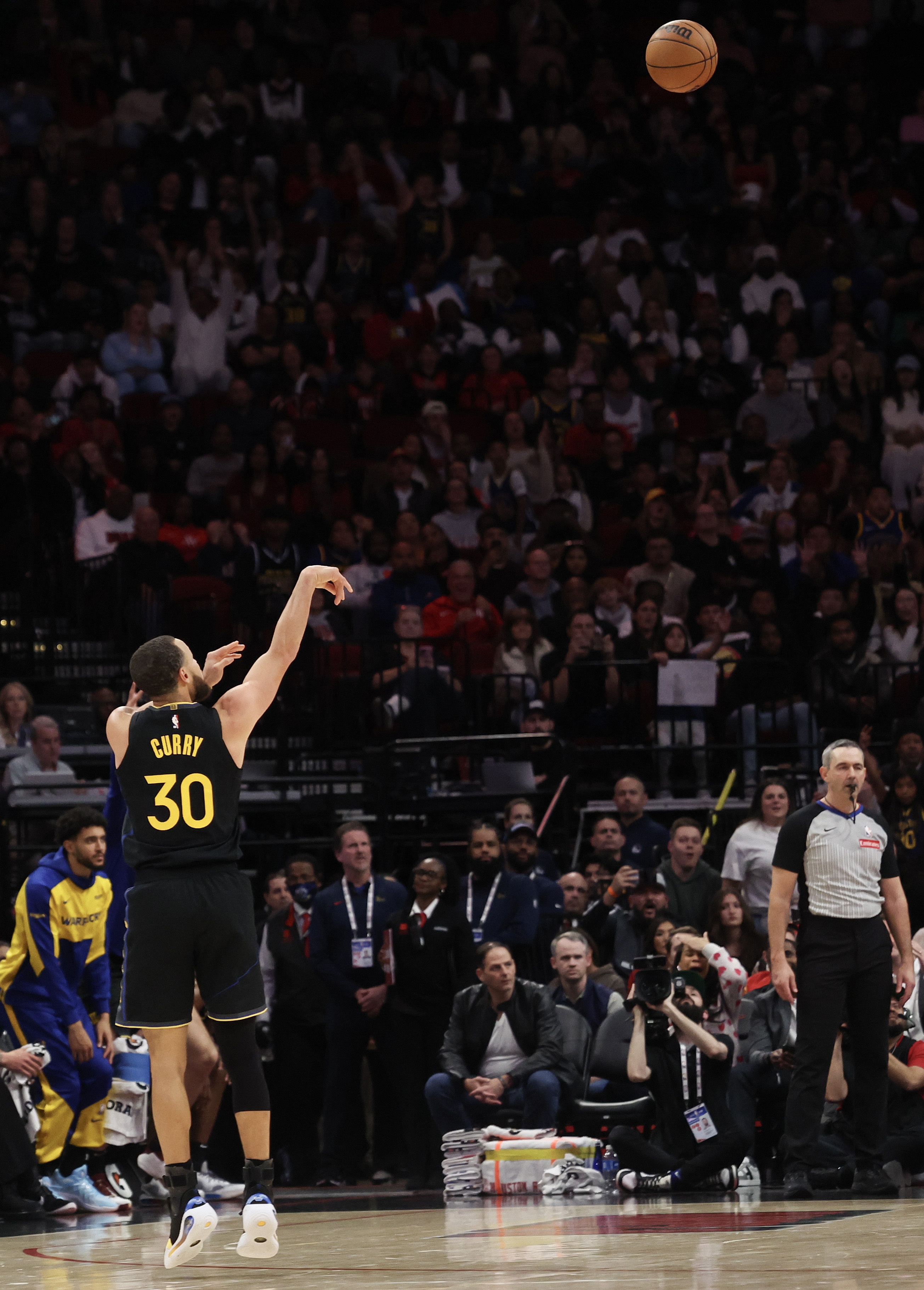 2021年12月28日,就在庫里超越雷-阿倫成為NBA歷史三分王的整整兩周后,他與勇士前鋒別利察完成了一次經(jīng)典的傳切配合,隨后在底角接球起跳,穩(wěn)穩(wěn)命中了職業(yè)生涯的第3000記三分球。