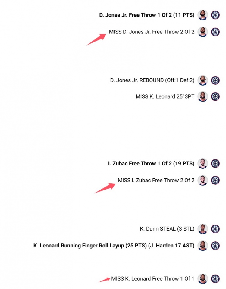 決勝時刻!祖巴茨、瓊斯、小卡90秒內(nèi)丟3罰球 全場快船才丟4個