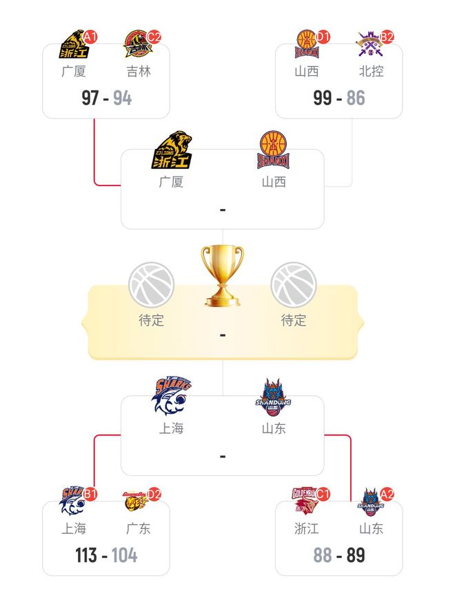 - CBA杯賽四強出爐,山東男籃大戰(zhàn)上海男籃,山西男籃對陣廣廈男籃