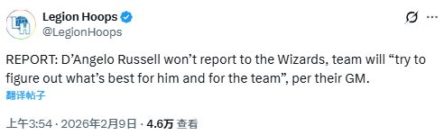 北京時間2月9日,在今年NBA交易截止日前,華盛頓奇才通過一筆以安東尼-戴維斯為核心的多方交易,得到了多名球員,前全明星球員拉塞爾也被包含在這筆交易中。不過,奇才總經(jīng)理威爾-道金斯透露,拉塞爾將不會向球隊報到。