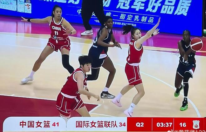 國(guó)際聯(lián)隊(duì)次節(jié)比賽連續(xù)追分,陳明伶籃下打成2+1后,對(duì)方空切得手后連續(xù)中投命中,接著又突破得手,打出一波8-0的小高潮縮小分差。楊舒予空切打成2+1止血,羅欣棫兩罰全中,楊舒予突破得分,中國(guó)女籃打出一波7-3擴(kuò)大優(yōu)勢(shì)以39-25領(lǐng)先。對(duì)方籃下得分后突破打成2+1,接著又突破得分,打出一波7-0的小高潮縮小分差。陳明伶和羅欣棫連續(xù)兩罰全中,中國(guó)女籃再次將優(yōu)勢(shì)擴(kuò)大到兩位數(shù)以44-34領(lǐng)先。對(duì)方中投連中四球,張子宇籃下連續(xù)吃餅得分,張曼曼兩罰全中,陳玉婕空切得手,半場(chǎng)比賽結(jié)束,中國(guó)女籃以54-43領(lǐng)先。