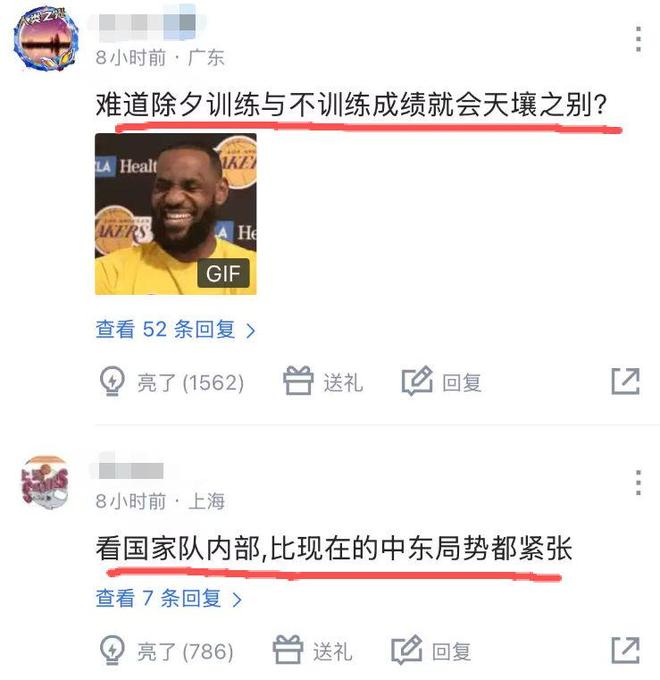 因?yàn)槊看沃袊谢@的集訓(xùn)時(shí)間總是很長,戰(zhàn)績卻不盡人意,加上這次趕上春節(jié)也未能給球員放假,這也引起了球迷的熱議:“假裝努力”、“難道除夕訓(xùn)練與不訓(xùn)練成績就會天壤之別?”也有人把矛頭指向郭士強(qiáng),稱“一將無能”。