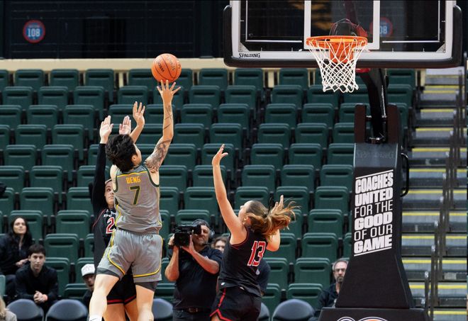 身高來到1米88的鄧雨婷,上賽季效力奧本大學(xué),就能夠交出場均11.8分的不錯數(shù)據(jù),而本賽季她則是加盟貝勒大學(xué),雖然數(shù)據(jù)對比上賽季有了不小的下滑,但能夠在強(qiáng)隊(duì)打上主力輪換,且場均貢獻(xiàn)6.8分,三分球命中率36.5%和上賽季持平,已經(jīng)很不容易了。
